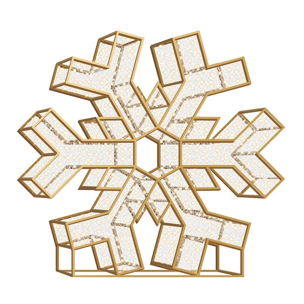 10′ Snowflake Icon – Radiant – Steel Frame with Gold Powder Coating – LED Warm White Lights Height: 10′