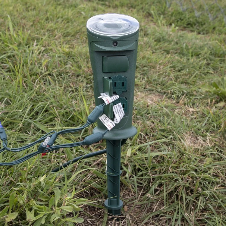 3 Grounded Outlets Photocell Ground Stake• Protective covers for outlets and dial face• 24-hour cycle and program repeats every day• Automatic darkness sensing cell activates all three outlets at dusk• Easily set the dial to the mode of your choice: Always on, Dusk to dawn, On at dusk for 2, 4, 6, 8 hours• Durable 12-inch ground stake included• 10 Amp Max• 6′ Power Cord• UL Rated for Indoor/Outdoor Use