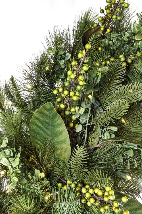Download – 30″ Mixed Pine Magnolia Berry Wreath – Warm White