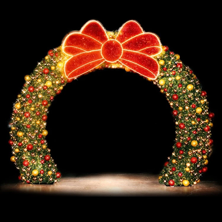 • Overall Height: 13.2’• Overall Width: 17’• Fill Material: Garland and Glitter Mesh• Lighting: Combination of Commercial Grade LED Mini Lights and LED Rope Lights • Light Color: Warm White• Rope Lighting: 13 mm, transparent PVC w/1.1″ bulb spacing• Stringer Lighting: Transparent PVC cable, bullet cap with glue injection, IP65, outdoor rated• Construction Type: Aluminum, Gold powder coated frame designed for demanding outdoor applications• Power Cord: UL Rated Power Cord• Some assembly required• Made In USA