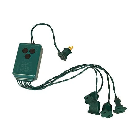 4 Channel Light String Control for Pro Christmas Light SetsBrand: Pro Christmas™Light Set Series: Professional/Commercial GradeWire Color: GreenConnectors: 4Plug Type: Stackable, fused. Standard 2-prong plug. Works with any standard 110/120 volt outlet. Max Watts: 216 (total watts for the entire controller)8 Functions: Combination, Waves, Sequential, Slow Glow, Chasing/Flash, Slow Fade, Twinkle/Flash, and Steady OnController: Will retain selected mode when powered on/off Directions: 1.) Select On Button. 2.) Select Mode Button until desired effect is reached. 3.) Timer, if no timer timer is needed ignore Timer Button. To set timer, 1 press of timer button = 6 hours, 2 presses of button = 8 hours and 3 presses of the timer = 12 hours.