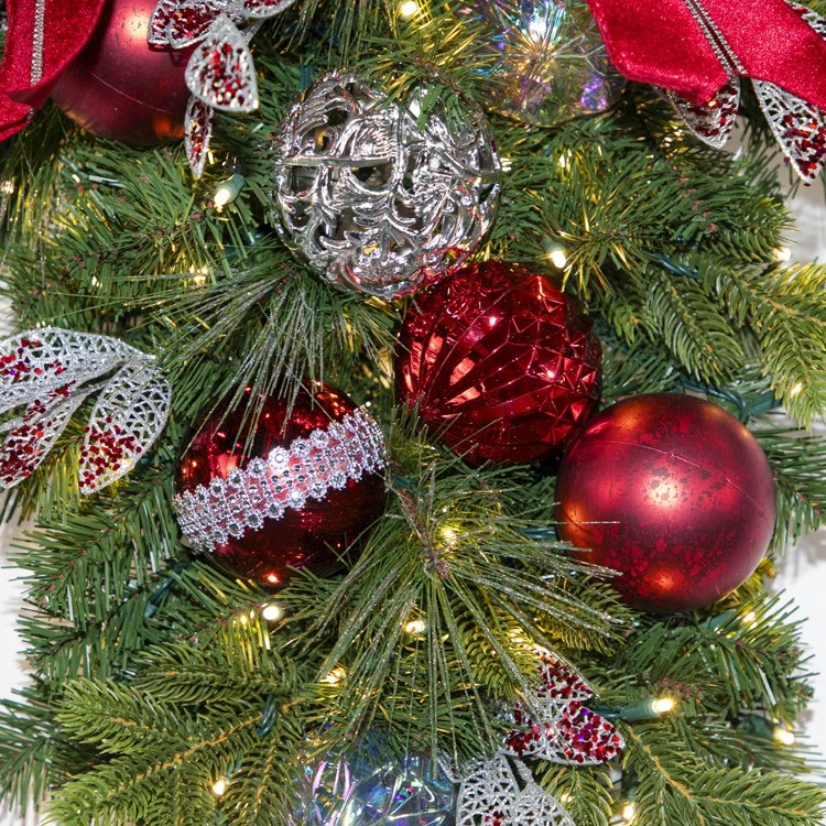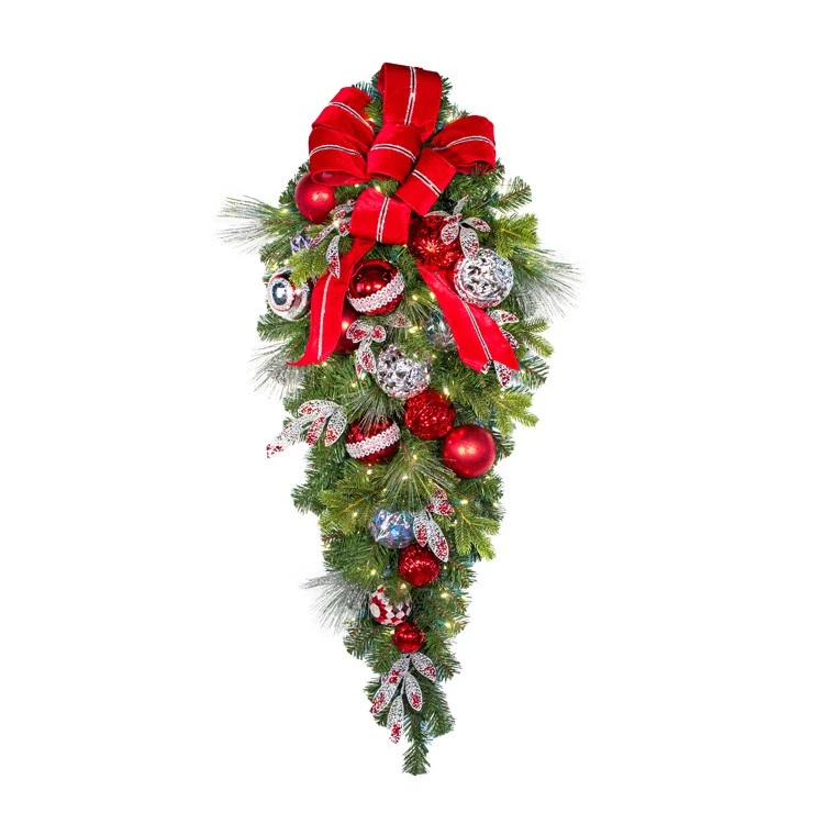 Signature Collection – 44″ Pre-Decorated Teardrop Spray – Red Splendor – Warm WhiteNot Battery Operated