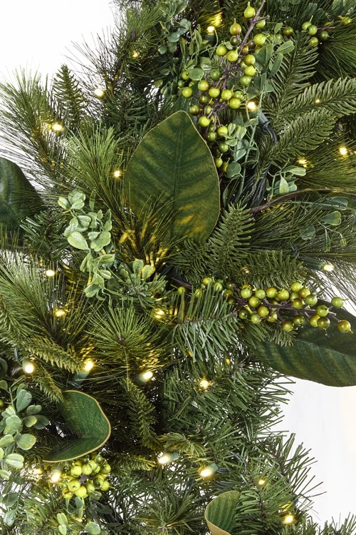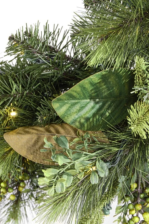 Signature Collection – 48″ Mixed Pine Magnolia Berry Wreath – Warm WhiteNot Battery Operated