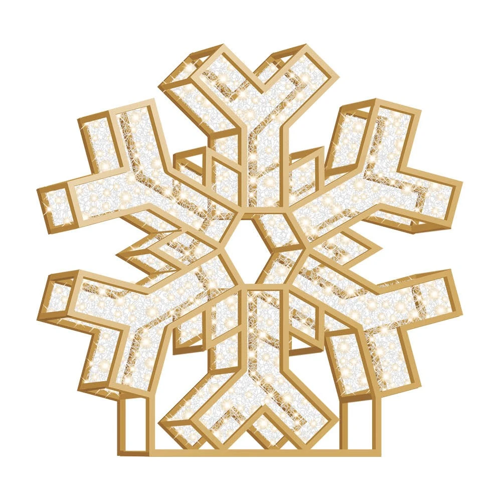 6′ Snowflake Icon – Steel Frame with Gold Powder Coating – LED Warm White Lights Height: 6′