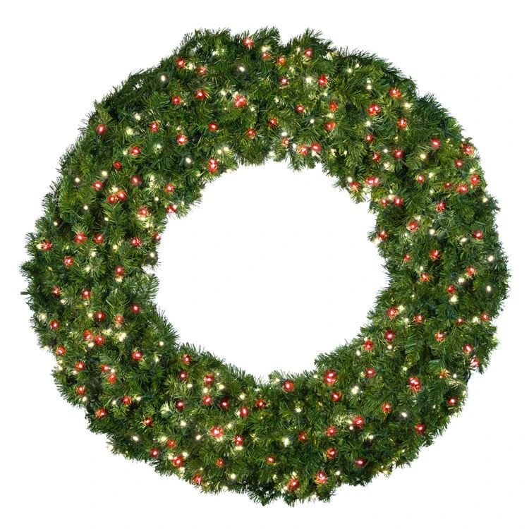 60″ Deluxe Oregon Fir Wreath, Lit with Pure White and Red LEDs• Not Battery Operated.