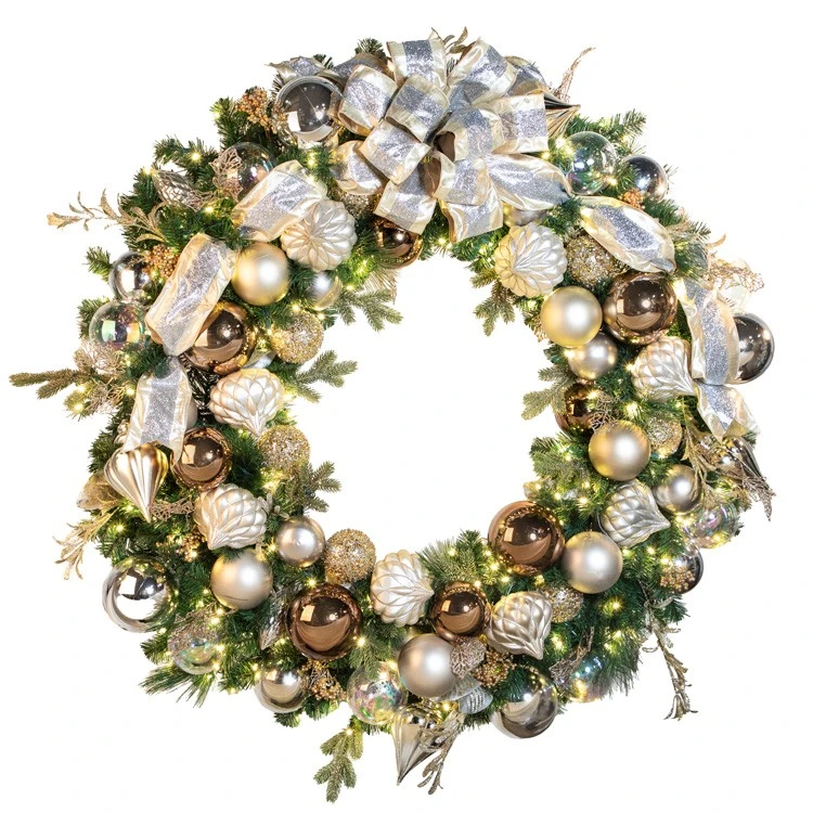 Signature Collection – 60″ Pre-Decorated Wreath – Champagne Shimmer – Warm WhiteNot Battery Operated