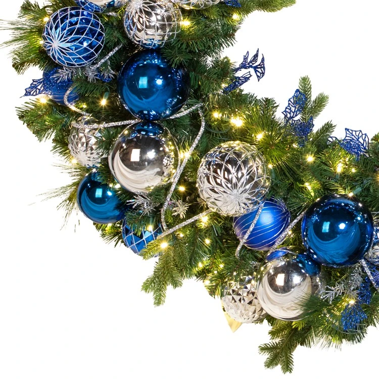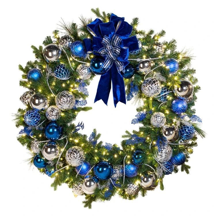 Signature Collection –Â 60″ Pre-Decorated Wreath – Sapphire Sky – Warm WhiteNot Battery Operated