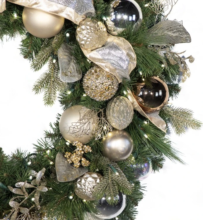 Signature Collection – 72″ Pre-Decorated Wreath – Champagne Shimmer – Warm WhiteNot Battery Operated
