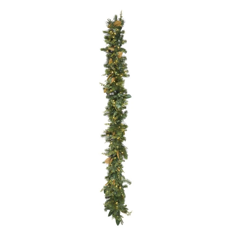 Signature Collection – 9′ X 14″ – Mixed Pine – Magnolia Berry Garland – Warm WhiteNot Battery Operated
