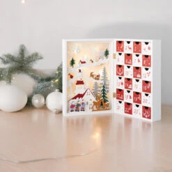 Lumineo Wood Advent Calendar With Church And Flying Santa Scene