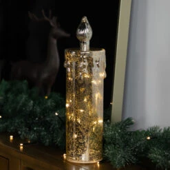 Northlight LED Lighted Dripping Mercury Candle Christmas Decoration – 8.75″ – Gold