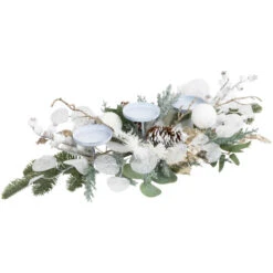 Northlight Pine And Berries Triple Candle Holder With Iridescent Christmas Ornaments – 32″