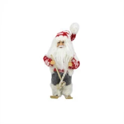 Frontier Reindeer Skiing Santa Claus Christmas Figurine – 9″ – Red And White