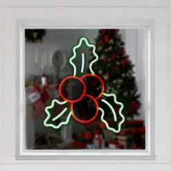 Northlight 12″ LED Lighted Neon Style Holly Berries Christmas Window Silhouette