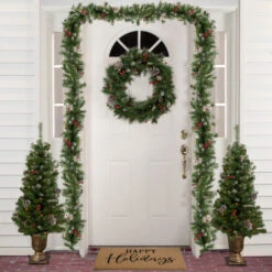Northlight Pre-Lit Berries And Pine Artificial Potted Christmas Tree – 3′ – Warm White LED Lights