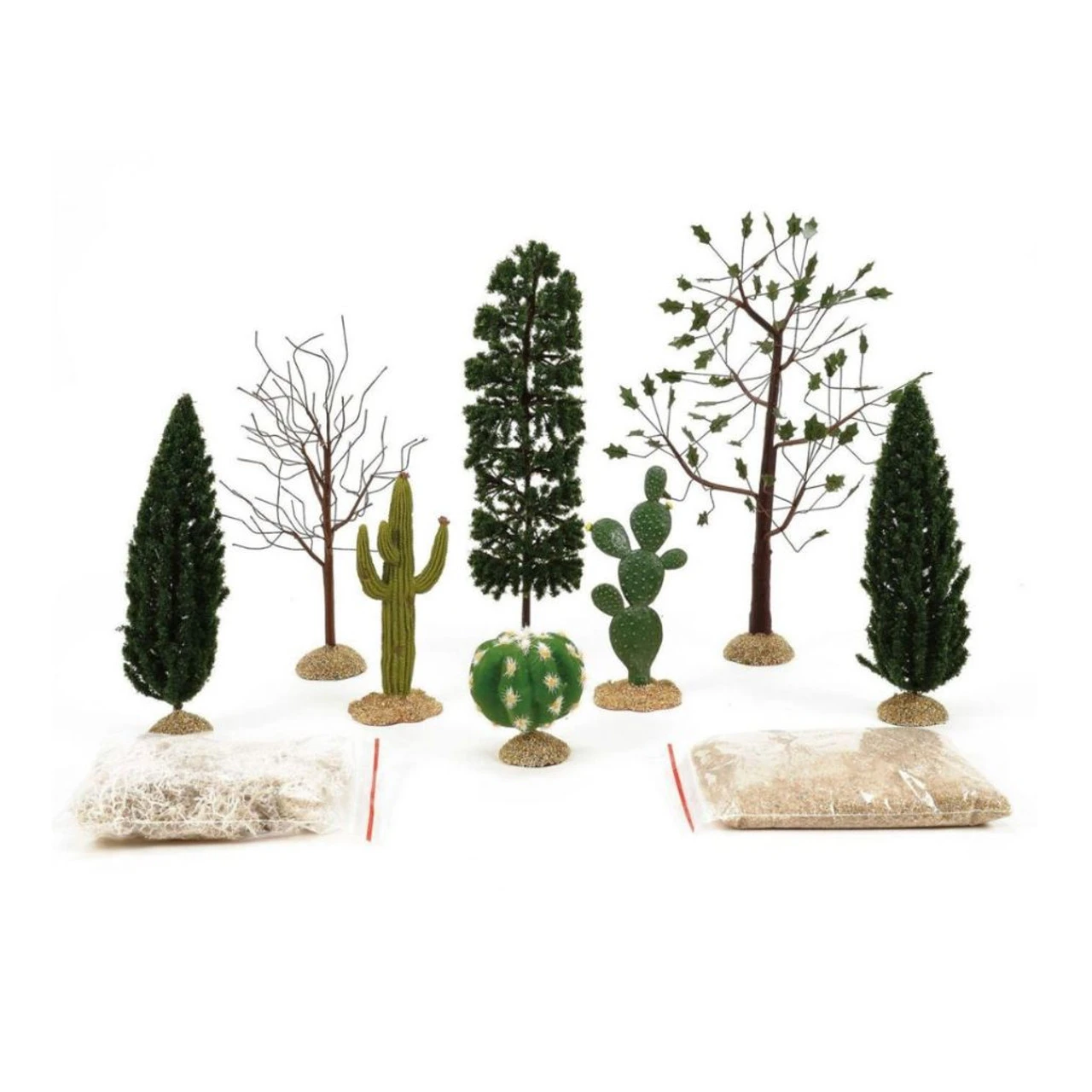 Enhance your village scenes with the Department 56 Canyon View Landscape Set of 10. This versatile collection includes a variety of trees, cacti, and shrubs, perfect for creating unique landscapes or desert-themed displays.