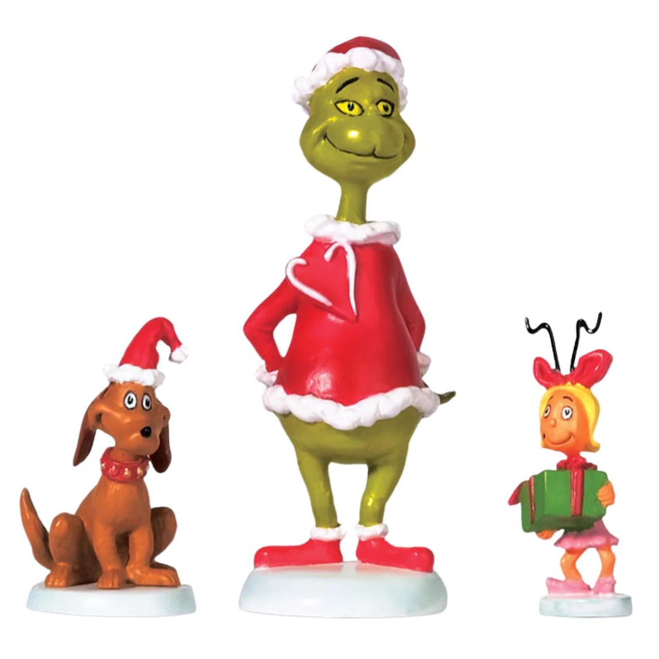 The tale of the Grinch has been a holiday favorite for decades and now you can bring a bit of the story home with the Department 56 Grinch Village. This set of 3 includes the Grinch, his faithful pup Max, and little Cindy Lou-Who.