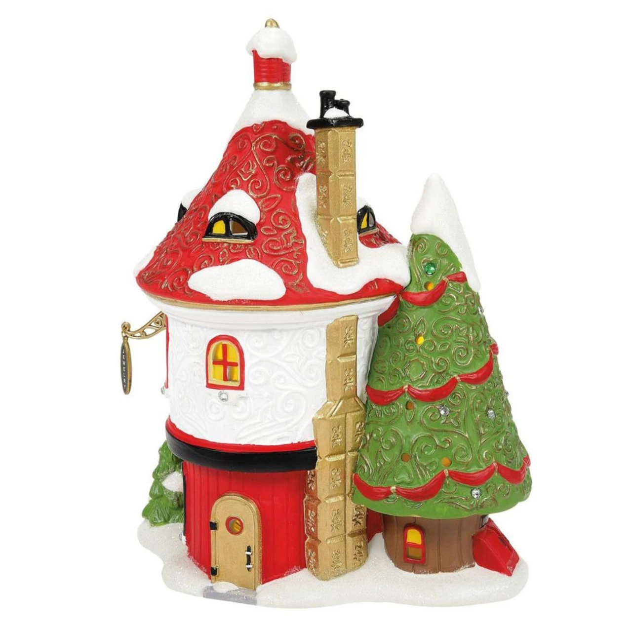 Add sparkle to your North Pole Village with Blingtastic Jewelers from Department 56. This dazzling shop features vibrant holiday colors, a whimsical tree adorned with jewels, and a snow-covered roof with intricate swirls.