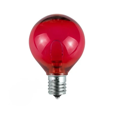 G50 LED Flexible Filament Bulb – Red – Pro Christmas™ – Bag of 25• Professional/Commercial Grade• Brand: Pro Christmas™• Bulb Design: G50, flexible filament, high strength, impact resistant lens• Bulb Color: Red• Light Action: Steady, Dimmable• Base Size: Intermediate Base – E17• Base: Nickel coated brass base prevents corrosion• Bulb life: 60,000 hours• Lens Height: 2 1/4″, Total Height: 3″• Lens Diameter: 2″• Volts: 120• Watts: .8• UL Rating: For Indoor/Outdoor Use