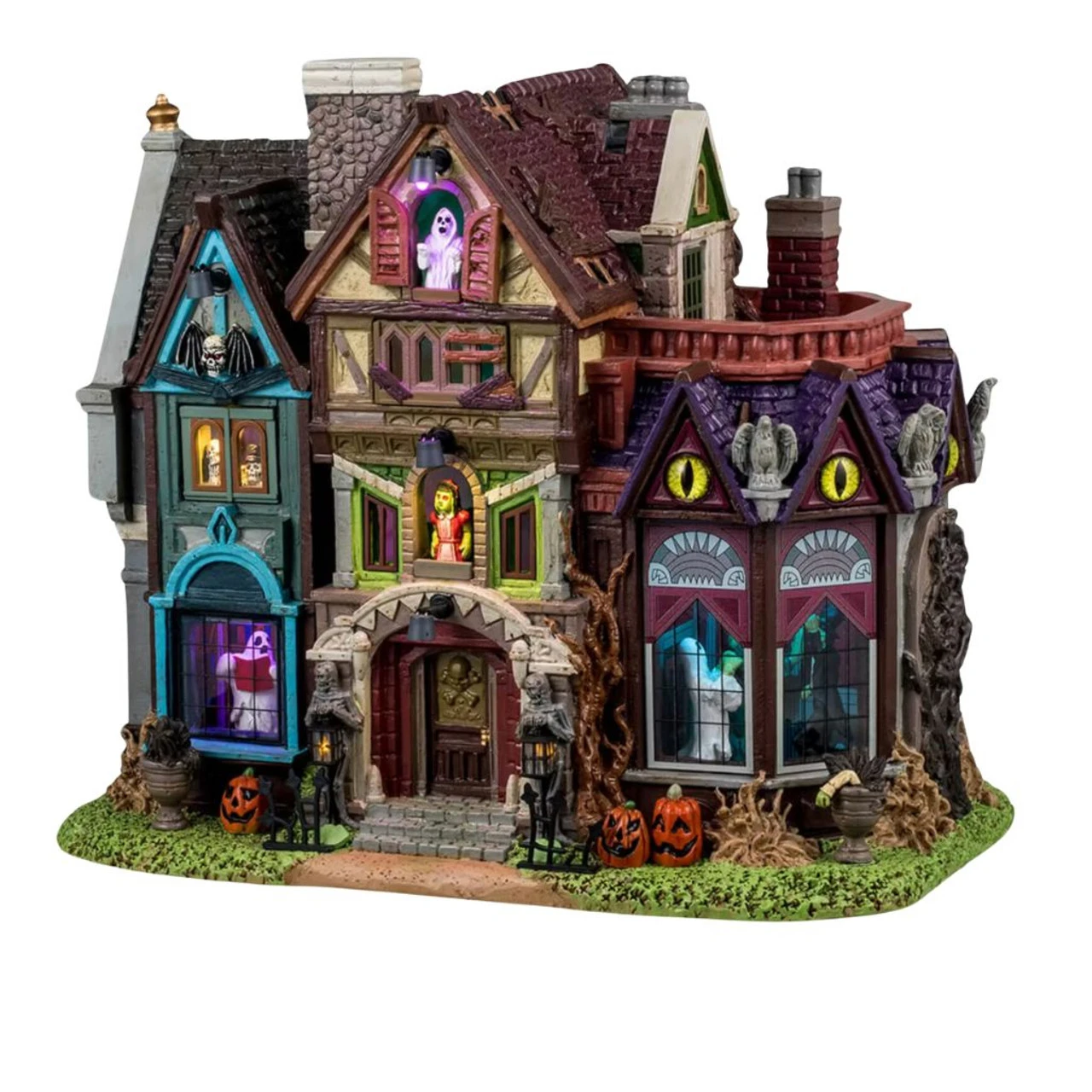 Step into the eerie charm of Lemax Spooky Town Madness Manor! This delightfully haunted house is bursting with gothic details, creepy characters, and glowing LED lights. Peering ghosts, jack-o-lanterns, and spooky window scenes bring this manor to life, making it the perfect centerpiece for your Halloween village.