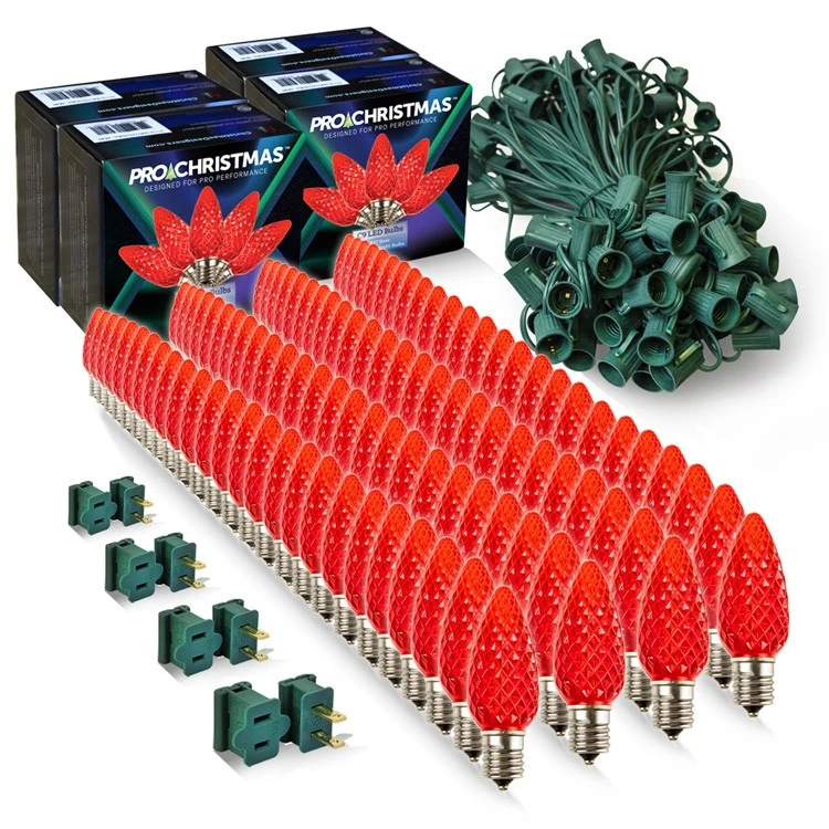 Light Line Kit – SPT-1 C9 100′ Green Cord, 12″ spacing, 100 Red Bulbs, with 4 Male and 4 Female Slide on Plugs