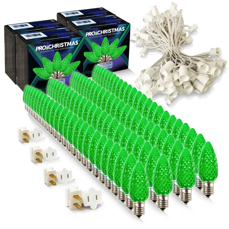 Light Line Kit – SPT-1 C9 100′ Green Cord, 12″ Spacing, 100 Blue Bulbs, with 4 Male and 4 Female Slide on Plugs