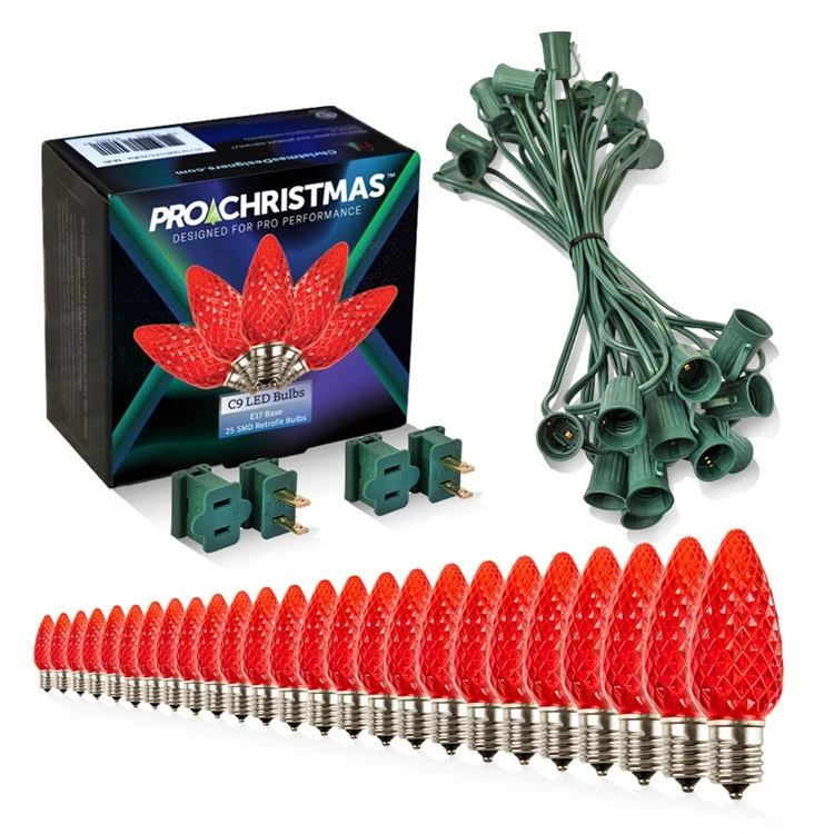 Light Line Kit – SPT-1 C9 25′ Green Cord, 12″ spacing, 25 Red Bulbs, with 2 Male and 2 Female Slide on Plugs