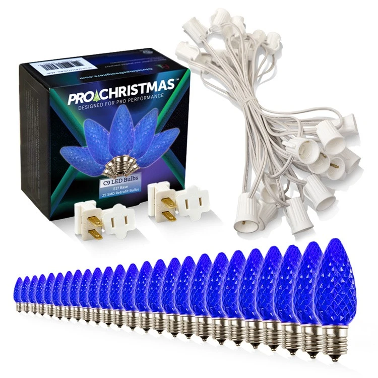Light Line Kit – SPT-1 C9 25′ White Cord, 12″ spacing, 25 Blue Bulbs, with 2 Male and 2 Female Slide on Plugs