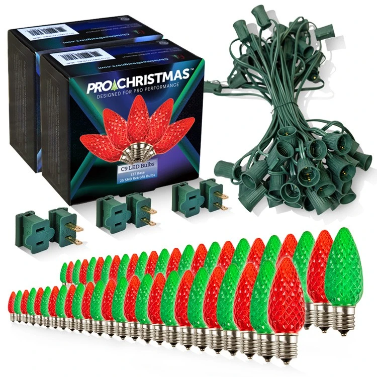 Light Line Kit – SPT-1 C9 50′ Green Cord, 12″ spacing, 25 Red and 25 Green Bulbs, with 3 Male and 3 Female Slide on Plugs