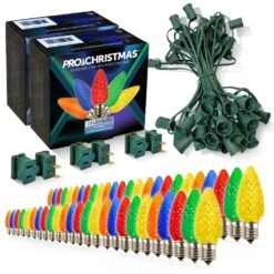 Light Line Kit – SPT-1 C9 50′ Green Cord, 12″ spacing, 50 Multi Bulbs, with 3 Male and 3 Female Slide on Plugs