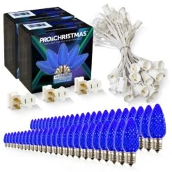 Light Line Kit – SPT-1 C9 50′ White Cord, 12″ spacing, 50 Blue Bulbs, with 3 Male and 3 Female Slide on Plugs