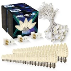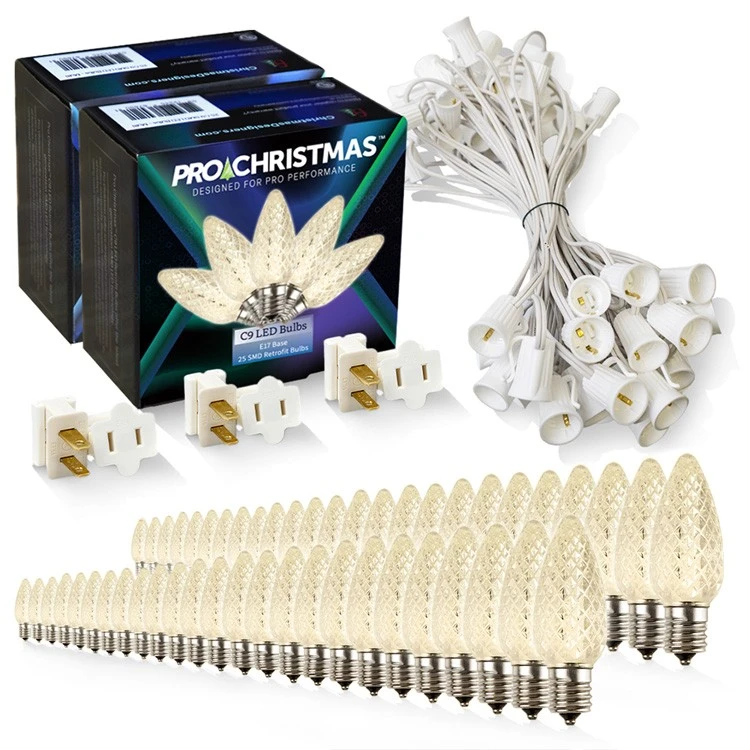 Light Line Kit – SPT-1 C9 50′ White Cord, 12″ spacing, 50 Warm White Bulbs, with 3 Male and Female Slide on Plugs