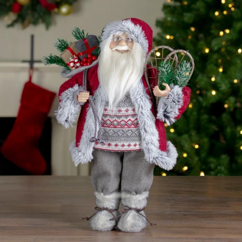 Santa Claus with wooden snow shoes