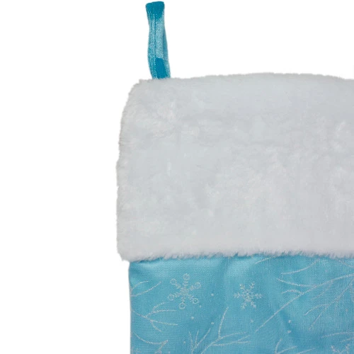Stocking has a glitter snowflake and branch design