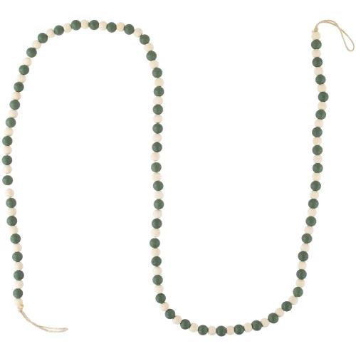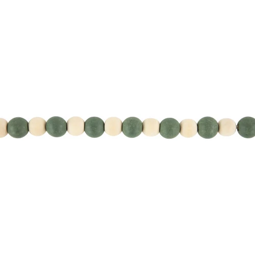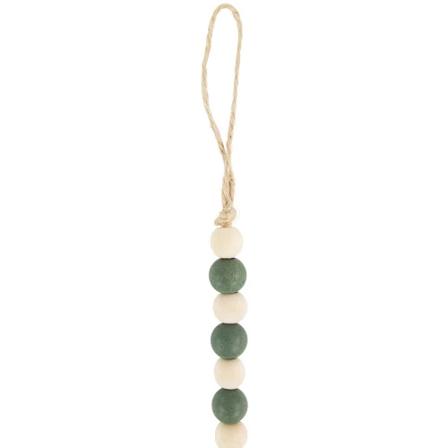 Features round green and ivory beads
