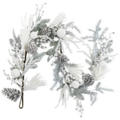 Crafted with white berries, frosted pinecones and Christmas ball ornaments