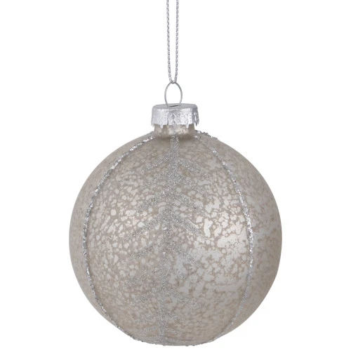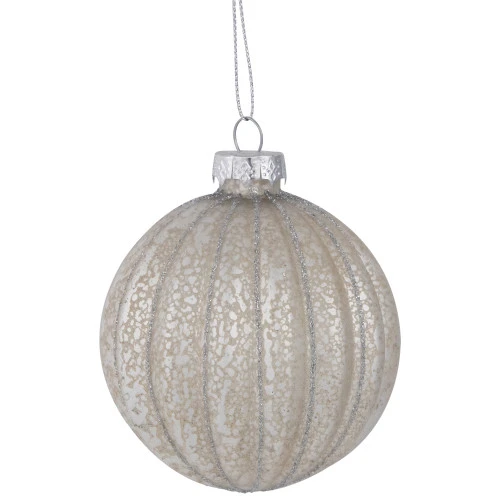 Comes ready to hang with silver ornament caps and cord