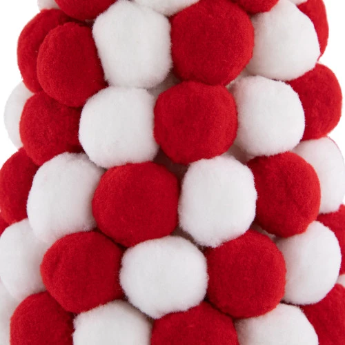 Features red and white pom pom balls