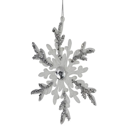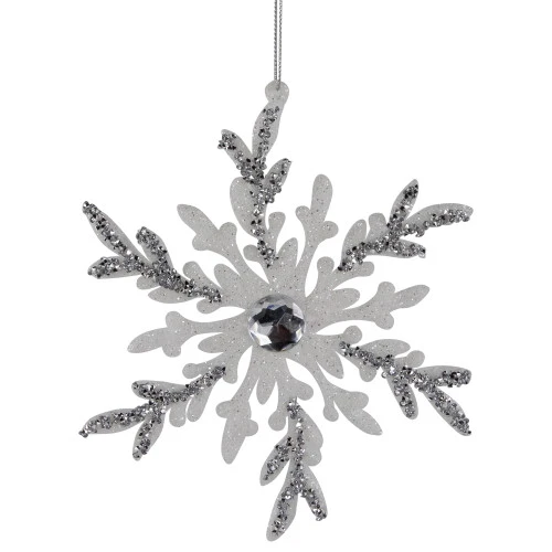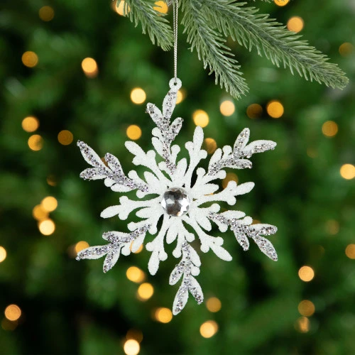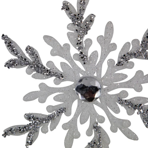 Faux clear gems decorate the center of each snowflake