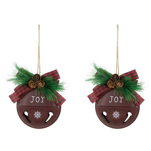 Set of 2 Christmas jingle bell disc ornaments