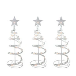Northlight Set Of 3 White Clear Lighted Spiral Cone Walkway Christmas Trees Outdoor Decor 18″