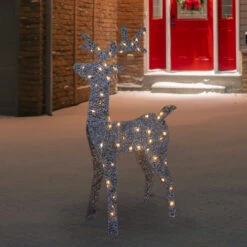 Northlight Glittered Rattan Reindeer Outdoor Christmas Decoration – 30″ – White – Clear Lights
