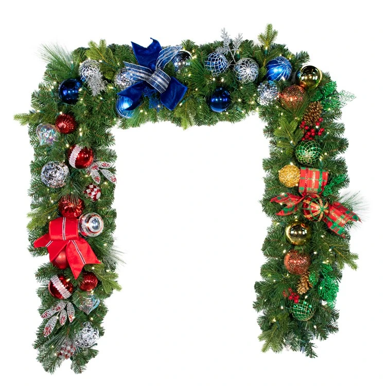 Signature Collection – 9’X14″ Pre-Decorated Garland – Red Splendor/Sapphire Sky/Classic Holiday – Warm WhiteNot Battery Operated