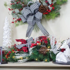 6′ X 12″ Pre-Lit Plaid Bows And Red Berries Artificial Christmas Garland – Warm White Lights
